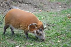 Hunting red river hogs in Africa will take you to the thickets and dense underbrush, where they lay-up during the daylight hours. A rifle of suitable power should be used, such as a .300 caliber or better. A 12 gauge shotgun with slugs would be effective as well. Treat these guys with respect; small groups with young can be counted upon to show aggression. Hunting red river hogs can make for an exciting evening and an interesting stalk, but use caution, as this ill-tempered beast can be extremely dangerous when wounded.