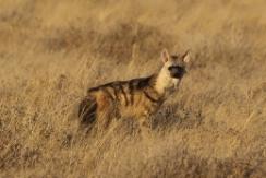 The aardwolf has excellent hearing, and locates its prey by sound, or by following the scent of soldier termites. They don’t eat all the termites in a mound, but leave a large percentage of the colony, so that it can rebuild.