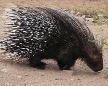 The African porcupine (Hystrix cristata), also known as the crested porcupine, is a species of rodent found in sub-Saharan Africa, and northern Africa. The word “porcupine” means “quill pig”, but the porcupine isn’t a pig, nor is it related to pigs in any way. It’s a rodent that weighs anywhere from 30 pounds to 60 pounds and is between 24 to 33 inches head and body length. There’s an old myth that the porcupine can throw its quills, but there is not a shred of truth in that. The quills detach quite easily and if a predator like a leopard or lion is hunting African porcupine, the rodent will raise up its quills, then runs backward, sideways, or jumps backward to drive the quills into the face of the predator. The quills are fairly close together, and there is a good probability of one or more puncturing a major organ or artery, which will result in a fairly rapid death for the animal.