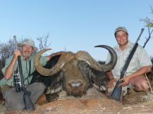 Another method of Cape buffalo hunting is hunting individual Dugga boys, or smaller bachelor herds. These are mature males that may have been pushed out of the herd by the herd bull. Tracking from waterholes and road crossings is again the preferred hunting methods. Because these bulls function on their own or in small groups, they have become adept at avoiding lions and are often more clever than the herd bulls. They are considered to be smarter and wiser from surviving alone and some hunters consider an old solitary Dugga boy to be the greatest Cape buffalo hunting trophy of all!