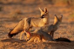 Predators known for hunting Cape fox in Africa include, lion, leopard, hyena, caracal, and large raptors like eagles and owls. They are susceptible to rabies and canine distemper. Many Cape foxes are killed from encounters with traffic, and snares and traps set out for other problem animals. Estimates of up to 15% of the total population of Cape foxes are killed this way each year, however they are not considered a threatened species.