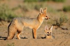 Cape foxes mate for life. They can breed all year around, but most kits are born between October and January. Females have a 50-53 day gestation period and can give birth to a litter of one to six kits. The mother chases out the previous litter when the new one is about to arrive. Kits become fully grown within one year. Life expectancy is around six years. Mortality rate for the kits is high.