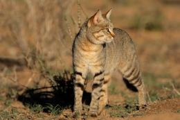 The African wildcat is similar to a house cat in appearance, but is a distinct species of wild cat that inhabits much of Africa, parts of Europe and Asia and the Arabian peninsula. Wildcats tend to have longer legs and shorter tails than domesticated cats. They are available as huntable species in several African countries. They are mostly hunted at night with the use of a spotlight as they are mostly nocturnal hunters and can be found in grassy fields searching for mice and other prey.