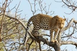 The African leopard is a spotted cat whose tail makes up approximately half of its length. It is widely distributed in sub-Saharan Africa. The leopard is huntable in most African countries where trophy hunting is allowed. Export permits for leopard trophies are governed by CITES. Leopards are solitary animals that occupy rather large territories. Where lions exist, they are known to lodge their prey in trees to avoid losing their kill to a competitor.
