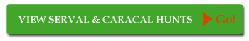 The seval is a medium sized spotted cat that prefers areas of tall grasslands, reed beds ad forest edges. The serval will normally be located close to water. Serval are offered as trophies in South Africa, Tanzania and Burkina Faso at the present time. They are taken as animals of opportunity or are hunted at night with spotlights. Some outfitters also offer hunting with dogs as an option.