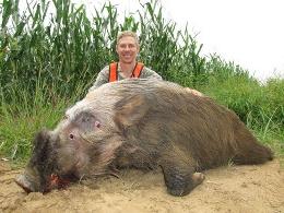 Bushpig are a specialty animal that many hunters seek out on their second or third trip to Africa. The bushpig makes a great trophy due to its unique coloration around the collar and head regions. The bushpig is a worthy adversary, as it is mainly nocturnal and requires absolute silence when sitting in a blind over bait waiting for the bushpig to make its appearance. Bushpigs are also hunted using hounds in some regions.
