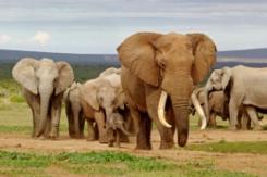 Hunting elephants in Africa can be done in Eastern, Southern and West Africa in deserts, scrub brush, heavy forests, and woodlands. The male of the species, the bull, stands ten to 13 feet tall on the average and weighs upwards of ten to thirteen thousand pounds. His tusks, which are actually the second set of his incisors, curve forward and continue to grow his entire life. African elephants have four molars that weigh a bit above eleven pounds each. As he feeds, the front pair wear down and fall out of his mouth. Then the back pair move forward, and two new molars emerge from the back of his jaw.