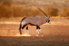 Hunting gemsbok in Arica requires a good set of boots because you will get to see a lot of country while you are searching for a trophy. Open country hunting demands a flat shooting rifle with a good scope, preferably a variable 3-9x. Gemsbok have excellent eyesight, hearing and sense of smell. Closing on one, or picking one out of a herd will require careful planning.