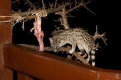 Hunting genet in Africa is done by spot and stalk. They are best hunted as animals of opportunity while hunting other game and are usually hunted at night with a spotlight. They are small animals and a large caliber rifle is not required for hunting genet in Africa. Any small centerfire that is legal in the country you are hunting in will do just fine. A good choice for genet would be the .223 caliber with the Barnes 55 grain Triple Shock bullet or any .22 caliber rifle with a solid bullet. Try to find a mature male to hunt. Set your crosshairs on the center of the genet’s chest.
