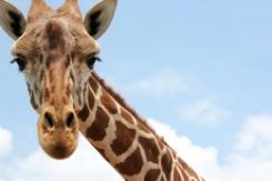 Mature African giraffes stand some 16-20 feet tall. Average weight is 2,600 pounds for the male and 1,800 for the female. There are records showing maximum weight for an old Stink Bull giraffe of 4,250 pounds. (“Stink Bull” - giraffe have chemicals in their fur that give the animal their smell. As an African giraffe ages, the smell gets stronger. An African giraffe appears to be all legs and neck with a compact body. A giraffe’s coat can run the gamut from orange to almost black over white or cream hair depending on its age and territory. Both sexes have horn-like growths on top of their skulls called ossicones. These are made out of cartilage that has hardened and become covered with skin. The giraffe bull uses these to fight with other males.