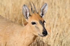 There are only a few methods of hunting grey duiker in Africa. Probably the most common is through opportunity. Hunting grey duiker in Africa is normally done in the early morning, or late afternoon when the antelope is most active. If permitted by law, duikers can be hunted at night with spotlights. Trophy evaluation can be hard as most of the time the duiker will not be in sight for very long. It becomes a see-shoot sort of hunt with little time to eyeball horn length or animal size. Horns that are as tall as the ears are about four inches in length.