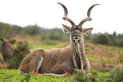 There are two subspecies of greater kudu; southern greater kudu and Eastern Cape kudu. The Eastern Cape kudu only occur in the Eastern Cape of South Africa. They are slightly smaller than the southern greater kudu, and have smaller horns. Their coat is darker also. Eastern Cape kudu horns average in the mid 40 inch range, with a 50 inch kudu being a magnificent trophy. Their habitat includes both dry semi-desert and thick bushveld that have nearby water and adequate food and areas of trees for shade and shelter.