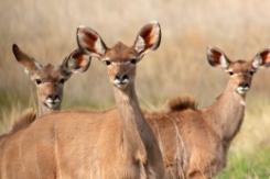 Predators that hunt kudu in Africa include leopards, lions, wild dogs, and hyenas. Cheetahs aren’t strong enough to take down a mature male kudu, but do hunt kudu calves, injured and sick animals and female kudus. The African greater kudu hasn’t got the body design to be fast, nor can it run at its top speed very long, so it tries to elude predators by jumping over obstacles to lose the attacker.