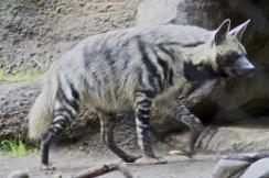 The striped hyena (Hyaena hyaena) is a species native to north and east Africa, along with populations in India and Asia. The global population is thought to be near 10,000 animals, but due to human interference, habitat loss and humans hunting striped hyena in Africa, the animal could be facing a ten percent drop over the next few years. The striped hyena is the smallest hyena with the mature male weighing between 50 pounds to 120 pounds, and standing 24 to 30 inches at the shoulder. Its senses of smell and hearing are weak, but it has excellent eyesight.
