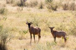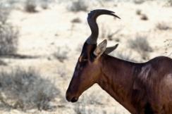 The common tsessebe (Damaliscus lunatus) is a member of the antelope family found in Botswana, Angola, Zambia, Namibia, Zimbabwe, Swaziland, and South Africa. Adult male tsessebe weigh between 250 and 350 pounds, and stand 46 inches to 54 inches tall at the shoulder. Females weigh 130 to 270 pounds, and are 45 inches to 52 inches at the shoulder. Both sexes have horns, and are one of the most difficult animals to sex. The male’s horns grow to about fifteen inches; females average 12 inches. When hunting tsessebe in Africa, a hunter needs to rely on the Professional Hunter (PH) to identify the proper animal to harvest..