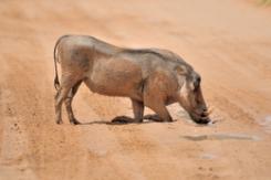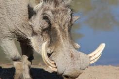 Hunting African warthogs for tusk size is fairly easy as the upper tusks stick out sideways from the jaw and are easily seen. They curve upwards and up to one third of their length is buried in the jaw. With the wind coming from the African warthog and towards the hunter, the hog can be approached quite closely - up to 20-30 yards. Most any rifle in the 7mm - 30 caliber with 170-180 grain bullets will handle hunting an African warthog of average size. Should a big trophy boar be on the menu, a larger caliber with heavier bullets is preferred. A shoulder shot with a Remington .416 was recently used on one large boar who promptly ran off. Granted, the bullet was a solid, but it still gives one an idea as to just how tough an African warthog is.