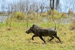 Hunting warthog in Africa can be extremely enjoyable. They are constantly on the move and shooting one is a bit of a challenge. When they run or trot they hold their tail straight up. Seeing that tail fly through the grass with a pig attached underneath can make it hard to keep a straight face and a steady sight picture. African warthogs are tough animals. An adult boar can soak up a lot of lead and not go down. One of the best ways is to search for tracks leading to water. African warthogs like to wallow in the mud and spend a lot of time at waterholes. When hunting African warthogs the hunter must stay downwind from the animal because, even though its eyesight isn’t good, its sense of smell and hearing are both excellent.